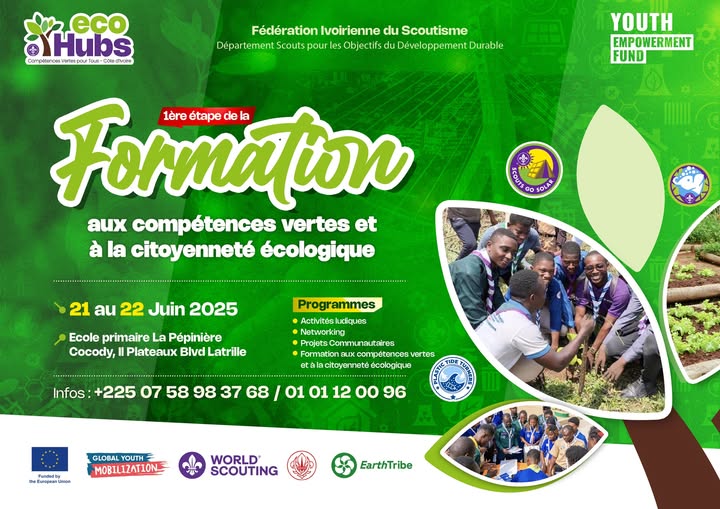 📅 Rendez-vous les 21 et 22 juin 2025 pour la première formation à la Pépinière des 2 Plateaux (Abidjan) pour deux jours de découverte, d’apprentissage et de mobilisation au service de la planète.